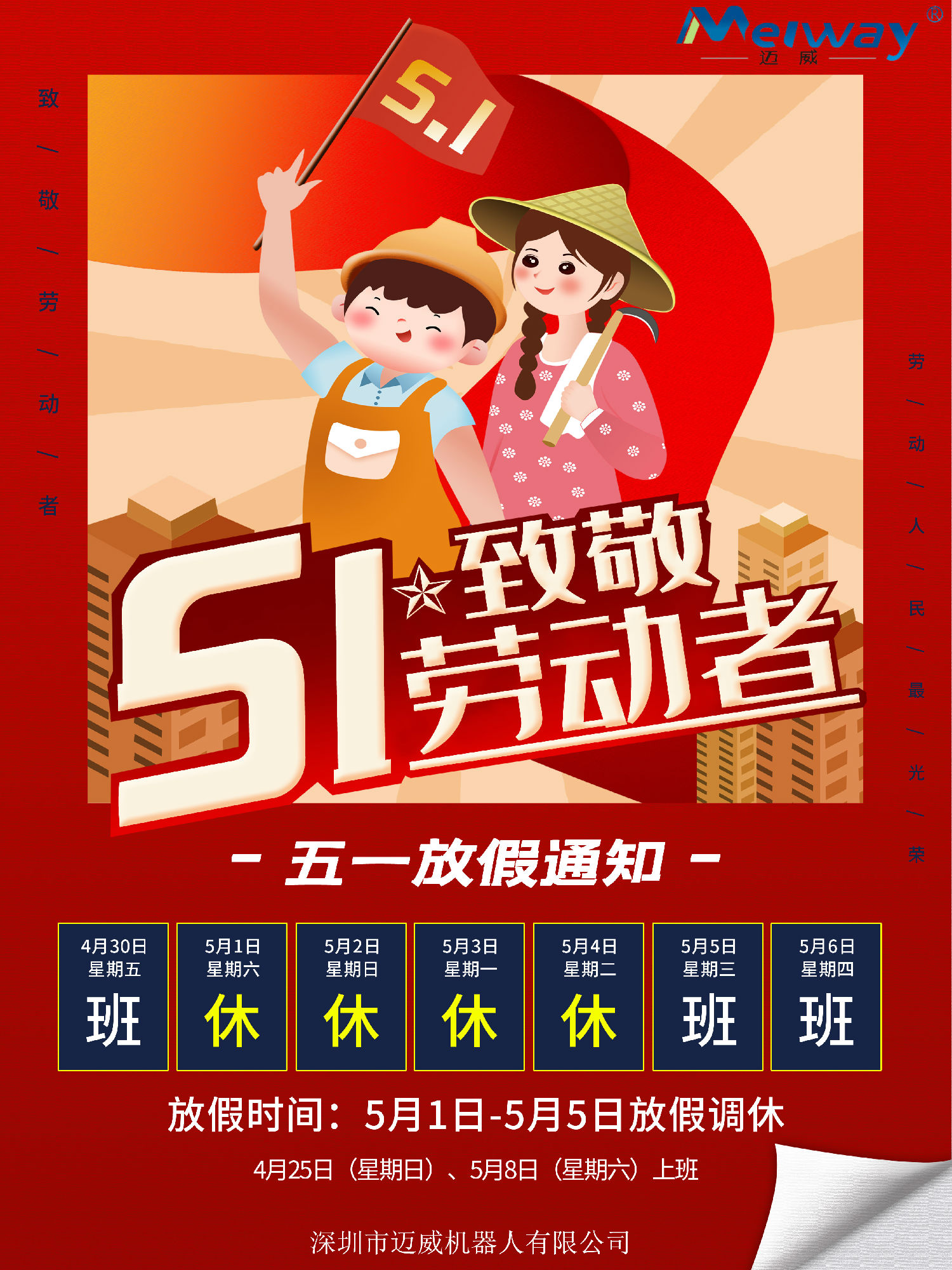 “勞動節”假期將至,根據國家節假日放假規定,並考慮公司的實際情況,現將2021年五一放假安排及相關事宜通知如下: